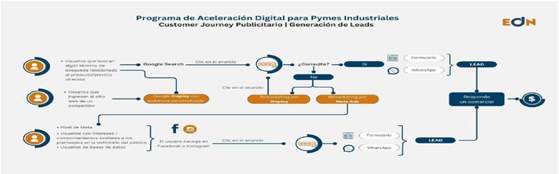 El presente Informe Final documenta el desarrollo y los resultados alcanzados en el marco del Programa de Digitalización Comercial para PYMES Industriales de la Provincia de Córdoba, ejecutado por Grupo EON América SAS en articulación con el Consejo Federal de Inversiones (CFI) y la Secretaría de Industria provincial. El programa tuvo como objetivo impulsar la transformación digital de diez empresas industriales cordobesas mediante un proceso integral de diagnóstico, planificación estratégica, implementación tecnológica y ejecución de campañas de marketing digital con enfoque B2B. Durante la Etapa I se realizó la selección de empresas, diagnósticos individuales, elaboración de briefs conceptuales, definición de customer journey y desarrollo de landing pages optimizadas para generación de leads, integradas con herramientas analíticas (Google Analytics 4, Tag Manager, Meta Pixel y Looker Studio). En la Etapa II se ejecutaron campañas publicitarias en Google Ads y Meta Ads, se implementaron tableros de reportería en tiempo real, se desarrollaron calendarios editoriales, piezas gráficas y acciones de contenido orgánico, junto con procesos de optimización continua basados en KPIs estratégicos (CTR, CPL, tasa de conversión y ROAS). Finalmente, el programa consolidó reportes de impacto, fortaleció la autonomía digital de las empresas participantes y dejó instaladas capacidades técnicas y estratégicas orientadas a la sostenibilidad comercial en entornos digitales.